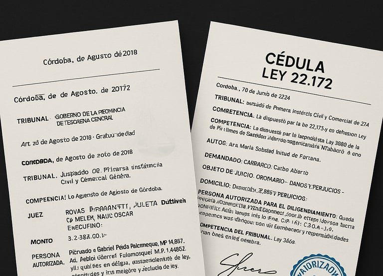 Diligenciamos Cédulas y Oficios Judiciales en toda la Provincia de Córdoba: rápido, seguro y profesional.